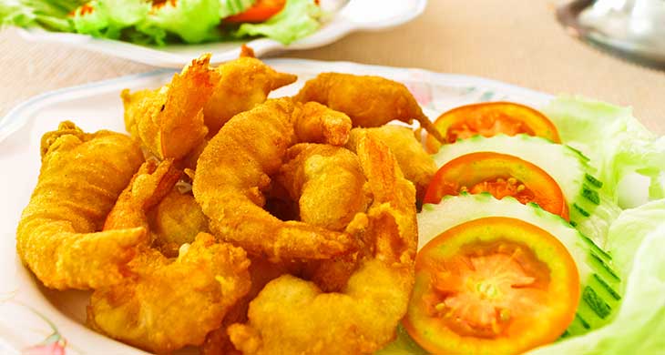 Deep fried shrimp with special gram flor batter serve with mint sauce