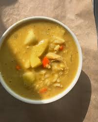 Boneless chunks of meat cooked in a thick cream sauce and touch with coconut powder