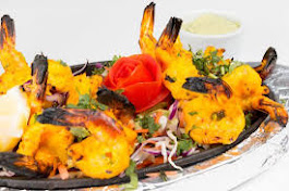 Juicy shrimp cooked with fresh onion, pepper with tomato sauce and dal, rice, naan, dessert, raita and salad