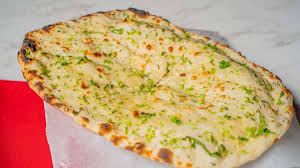 Flat white flour bread drizzled with garlic