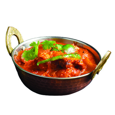 Boneless chicken breast meat cooked in pickling hot goan spices and touch of vinegar, potatoes and dal, rice, naan, dessert, raita and salad