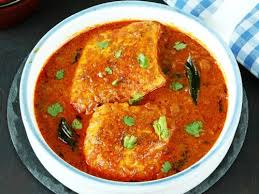 Fillets of salmon prepared in tomato, onion curry