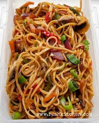 Noodles cooked with vegetables in a hakka style