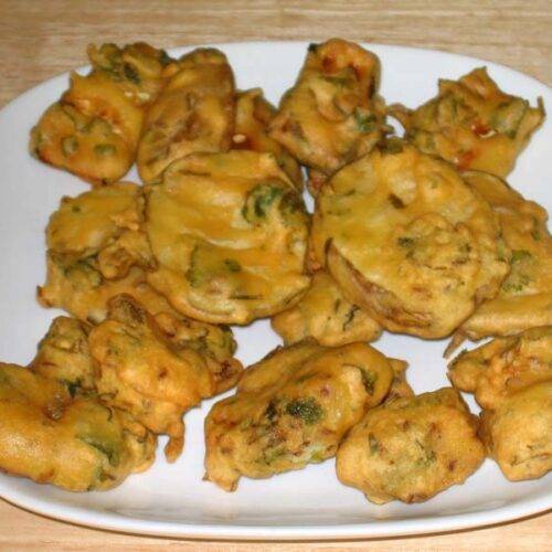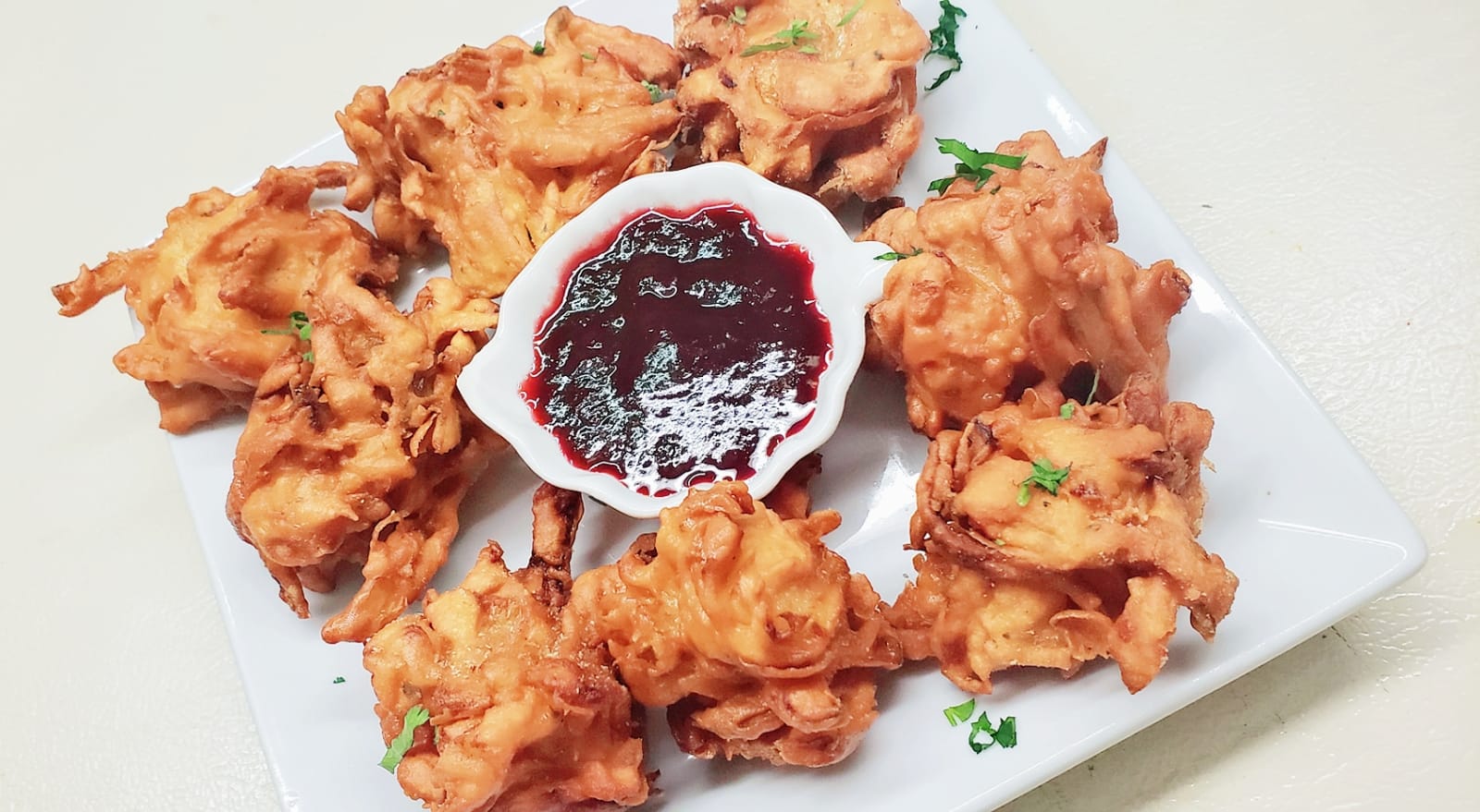 Deep fried onion slices wrapped in delicately spiced chickpea flour batter