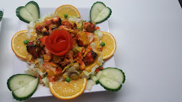 Fresh garden salad with roasted chicken tikka touch with mango sauce