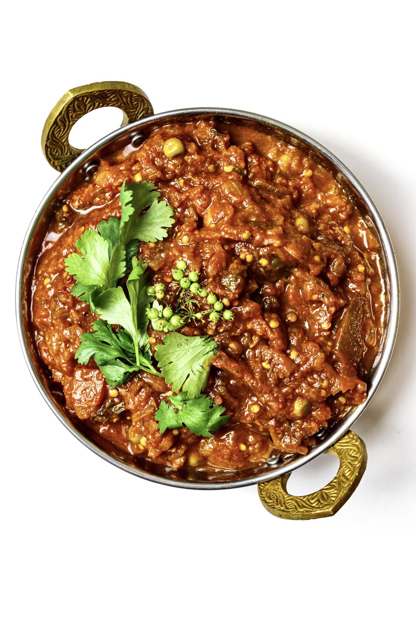 Boneless lamb meat cokked in pickling hot goan spices and a touch of vinegar and potatoes