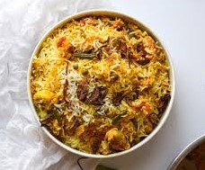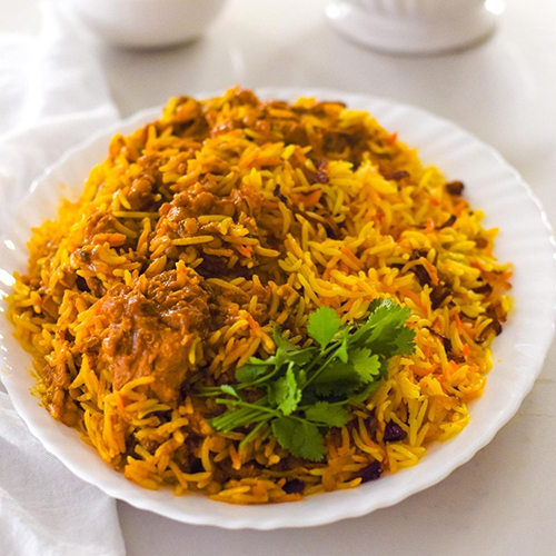 Boneless lamb meat cooked with rice a in special blend of spice, mint and coconut powder