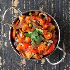 Juicy shrimp prepared in tomato, onion curry with green pepper and onion