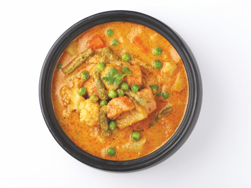Seasonal veggies cooked in a tomato and creamy sauce touch with coconut powder
