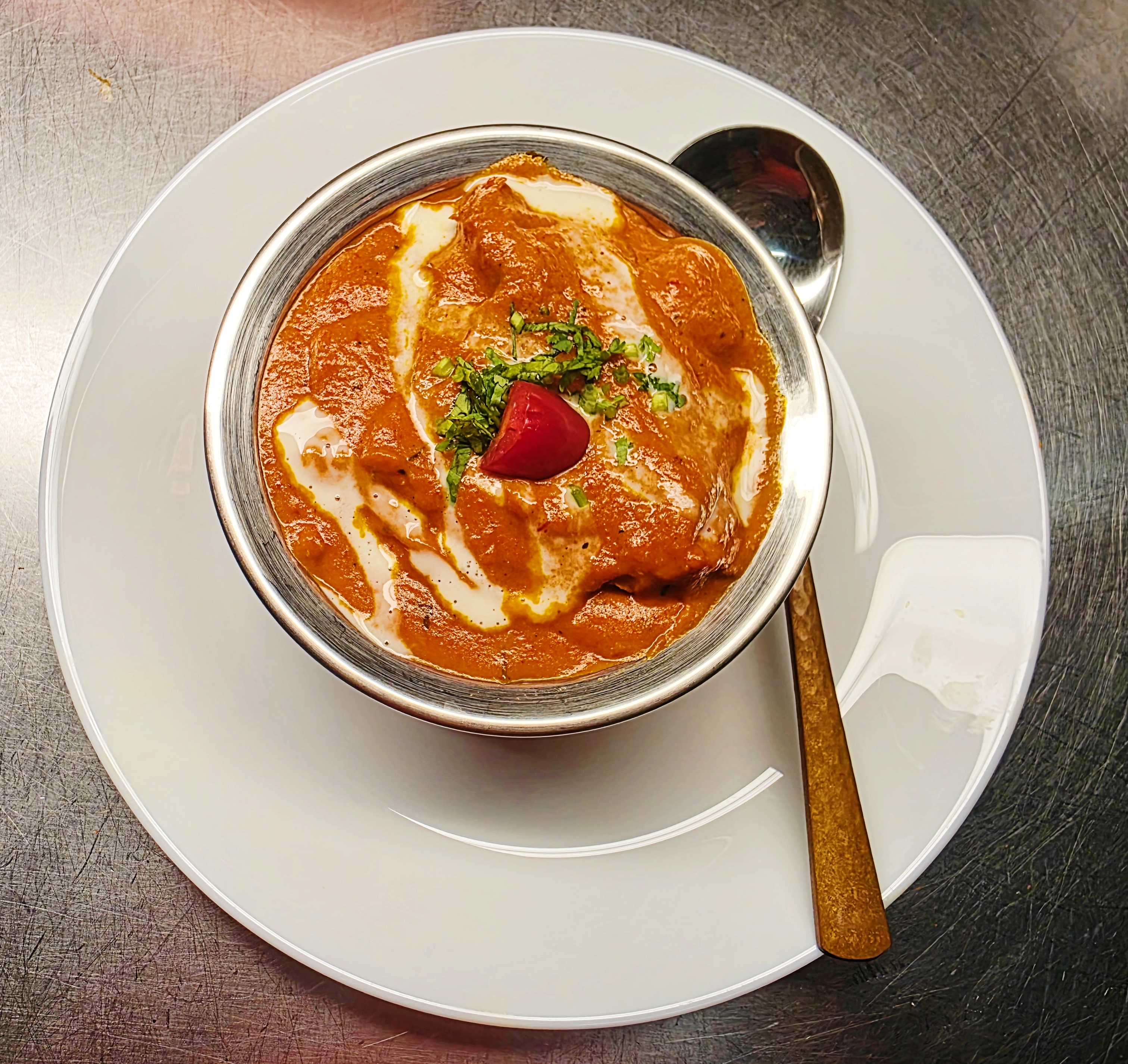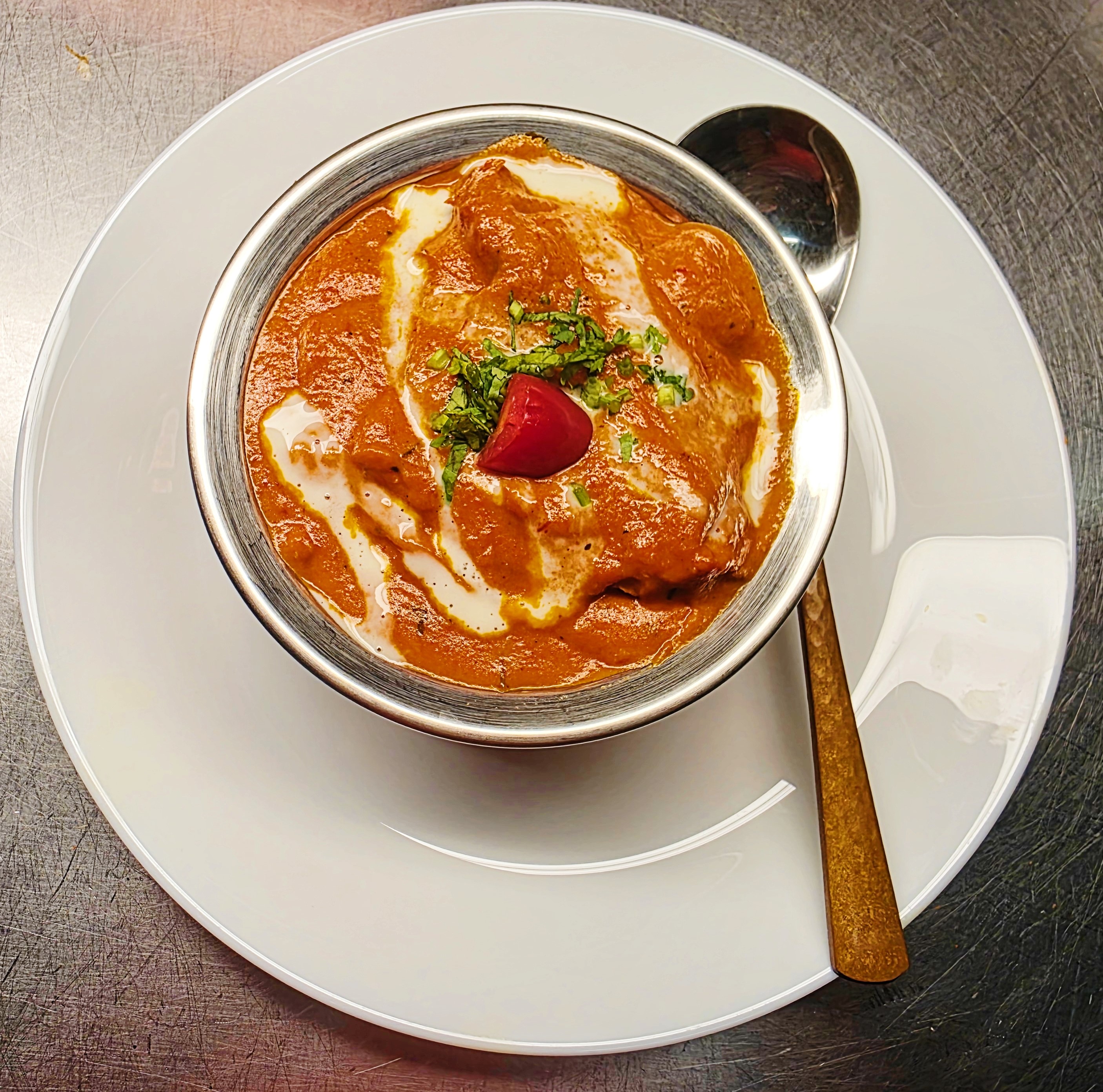 Boneless Tandoori Chicken Tikka cooked in butter, tomato and creamy rich sauce