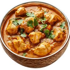 Boneless chicken breast meat prepared in tomato, onion curry and dal, rice, naan, dessert, raita and salad