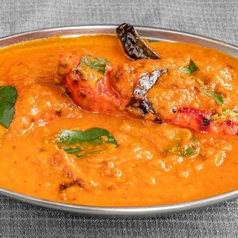 Boneless lamb curry cooked with curry leaves, mustard seeds with coconut milk