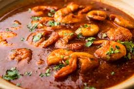 Shrimp cooked in a hot tangy sauce and touch of vinegar and potatoes