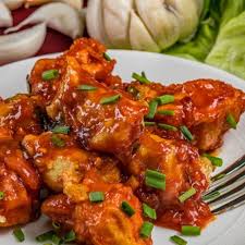 Fried boneless chicken balls cooked with soya sauce, tomato ketchup and garlic sauce